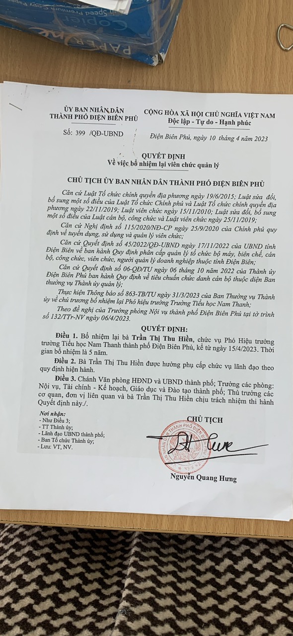 QĐ của UBND Thành phố Điện Biên Phủ v/v đổi tên các trường thuộc phường Nam Thanh