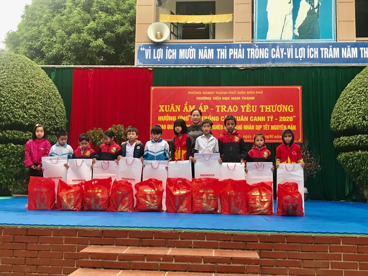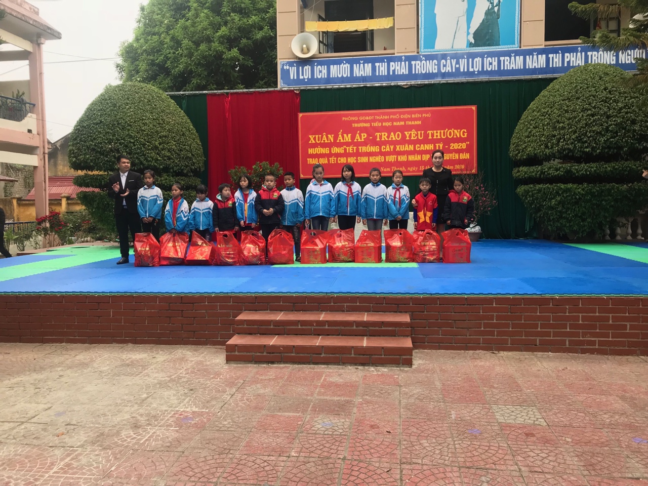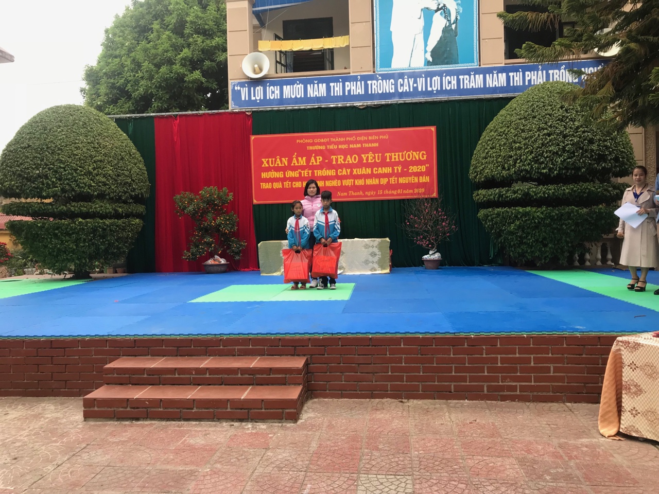 Trường TH Nam Thanh hưởng ứng tết trồng cây và tổ chức trao quà tết cho các em học sinh nghèo vượt khó
